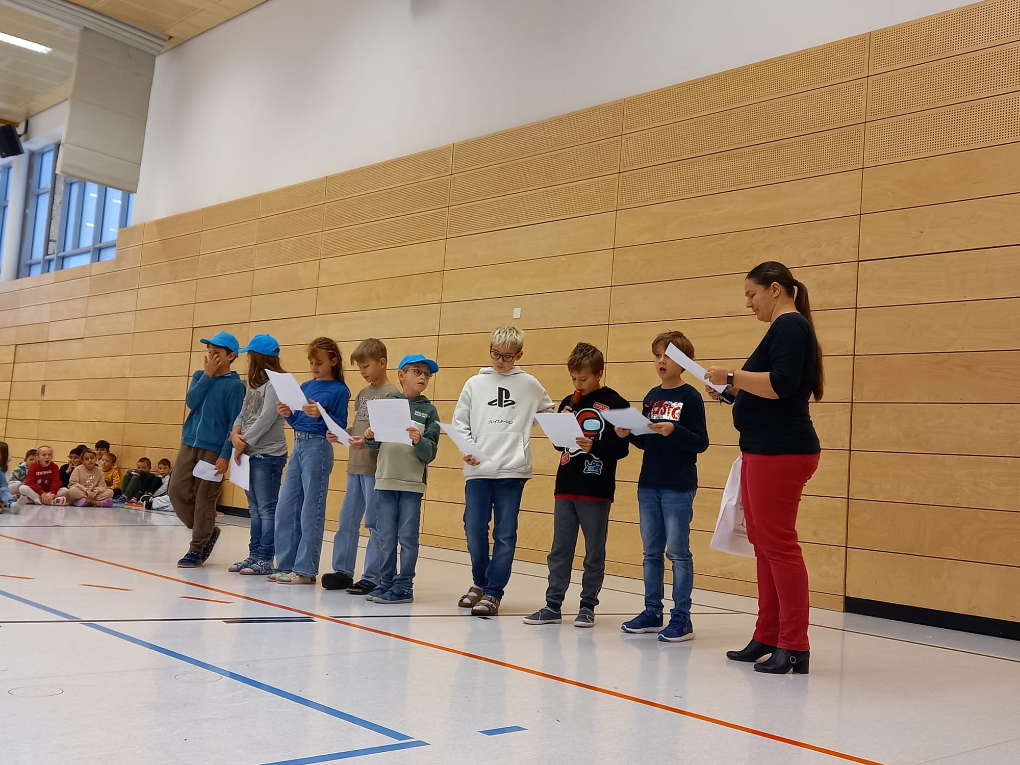 Anfang Oktober traf sich die Schulfamilie zusammen mit der Schule am Regenbogen in der Turnhalle, um das erste Monatstreffen im laufenden Schuljahr durchzuführen.