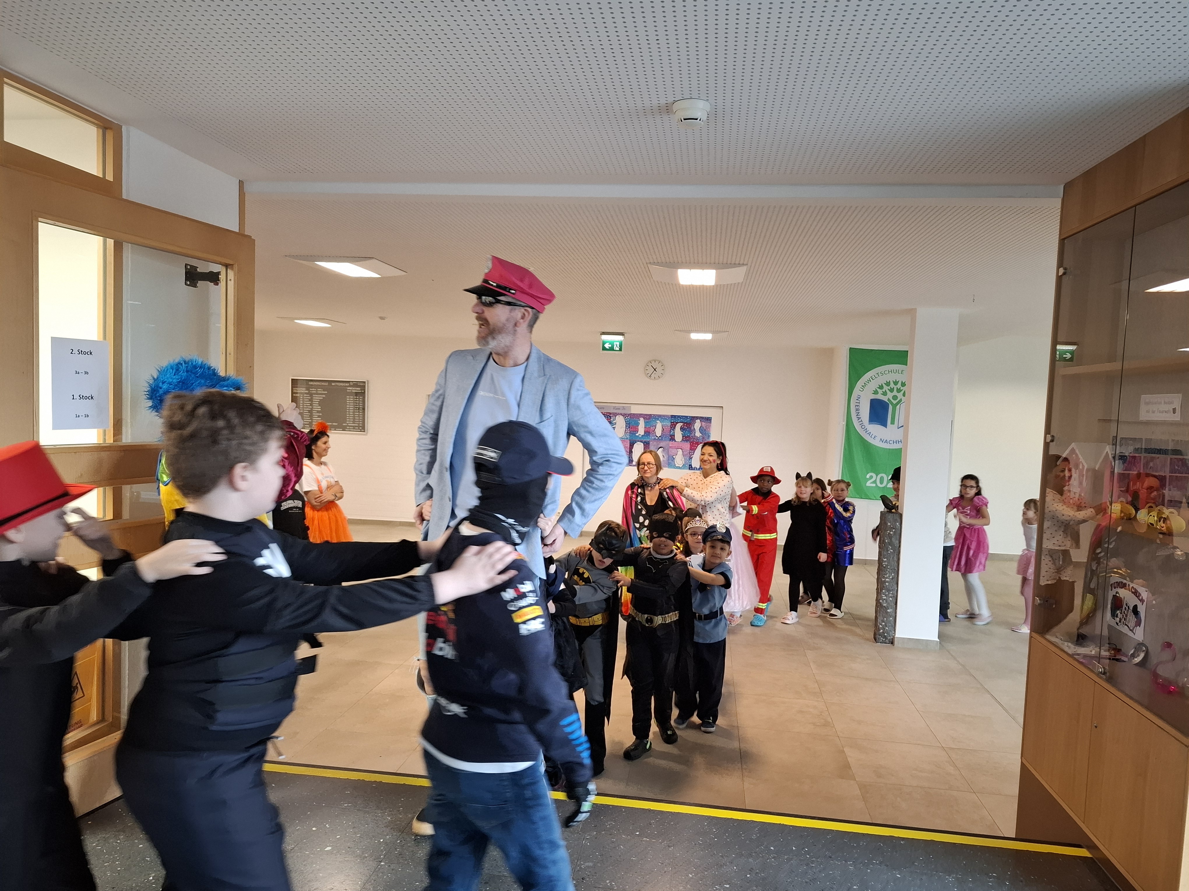 • Donnerstag: “Kostüm-Tag und Polonaise durchs Schulhaus” Der Tag stand ganz im Zeichen der Verkleidung. Mit individuellen Outfits begleiteten wir gemeinsam eine große Polonaise durchs Schulhaus. Die Abschlussfeier in der Turnhalle mit viel Gemeinschaftsgefühl bildete den Höhepunkt des Tages.