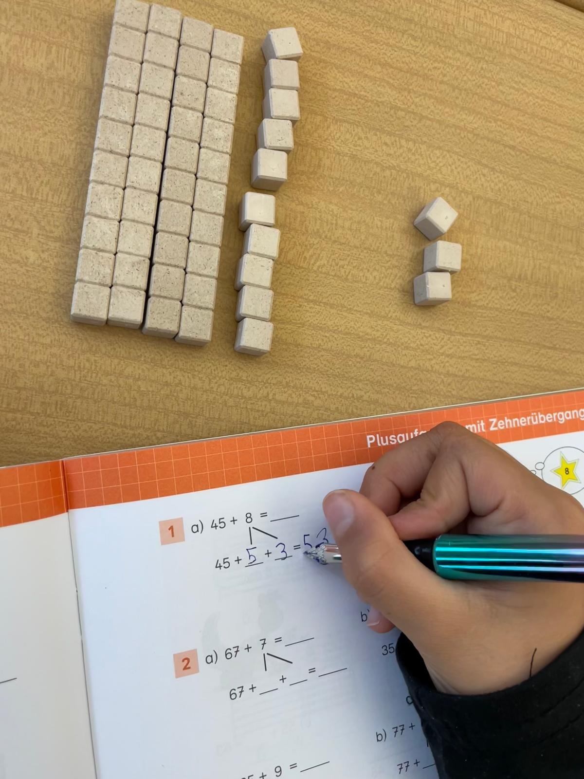 Im Mittelpunkt steht das sogenannte Dienes-Material. Dahinter verbergen sich Würfel, Stäbe und Platten, mit denen Zahlen sichtbar und greifbar werden: Einer als kleine Würfel, Zehner als Stäbe, Hunderter als Platten und Tausender als große Würfel. So lassen sich Zahlen nicht nur schreiben, sondern auch bauen, zerlegen und vergleichen.