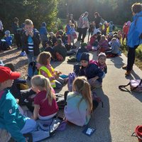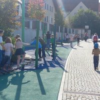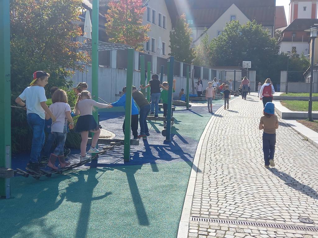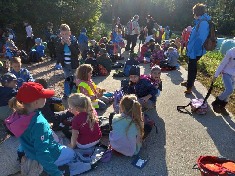 Bei herrlichem Herbstwetter machte sich unsere Schulfamilie auf zu einem Wandertag. So wanderten die ersten und zweiten Klassen über Pollenried zur Wallfahrtskirche Heilbrünnl. Dort angekommen war eine Stärkung angesagt: viele ließen sich die mitgebrachte Brotzeit schmecken oder verspeisten die bestellten Wienersemmeln. Auch vom Eisangebot der Gaststätte wurde reichlich Gebrauch gemacht. Schließlich wanderte man über die Sackmannbrücke zum Esper und vergnügte sich dort am Spieleband, bevor man sich dann wieder auf den Rückweg machte. Dieser führte über die neue Brücke über den Regen zurück zur Schule.